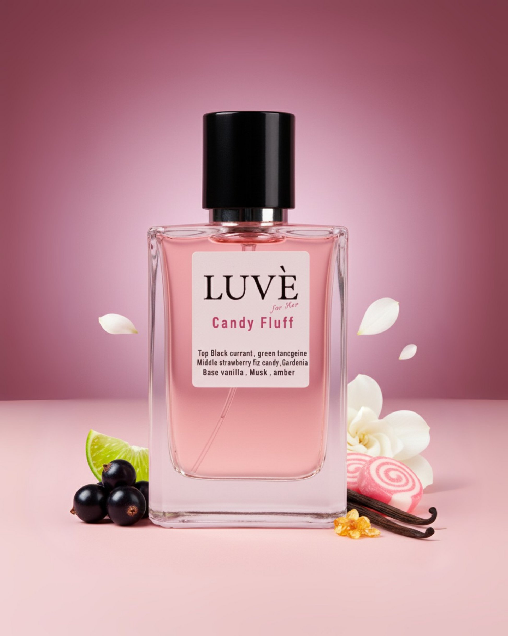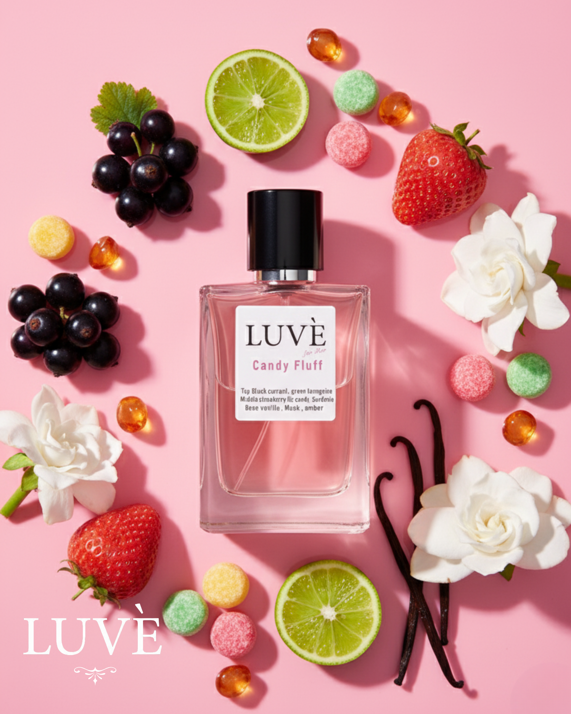 A playful and irresistible gourmand scent. Juicy black currant and green tangerine open the fragrance, followed by a heart of fizzy strawberry candy and soft gardenia. Vanilla, musk, and amber create a sweet and sensual finish.